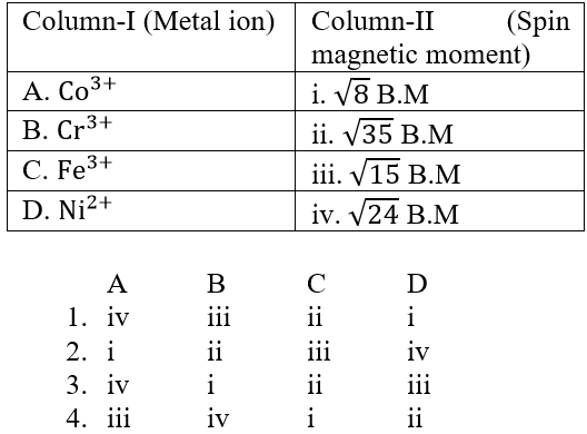 1. (a)-(ii), (b)- (iv), (c)-(i), (d)-(iii)2. (a)-(iv),(b)-(ii), (c)-(i), (d)-(iii)3. (a)-(iv),(b)-(ii), (c)-(iii), (d)-(i)4. (a) -(ii),(b)-(iii), (c)-(iv), (d)-(i)